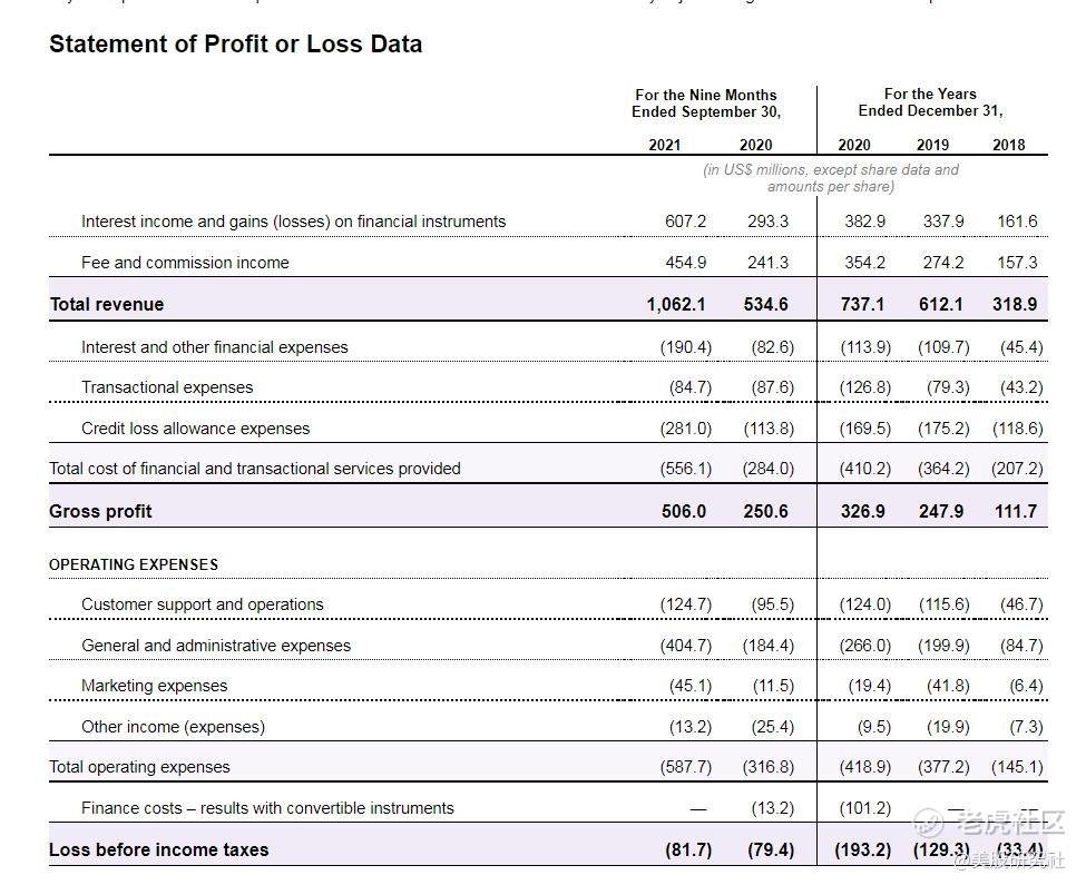 比较亮眼的是毛利润的增长,在2020 年,Nubank的毛利润为 3.269 亿美元,较 2019 年的 2.479 亿美元增长 31.9%。在 2021 年前九个月,Nubank毛利润为 5.060 亿美元,较去年同期的 2.506 亿美元增长101.9% 。
