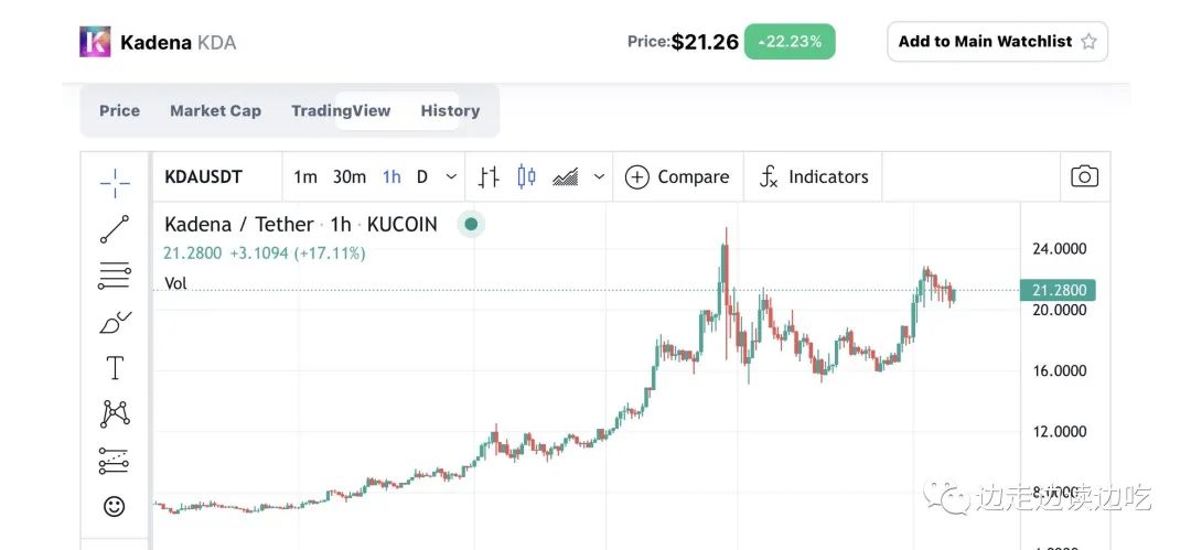 2021年11月10日: 主打公私链混合,号称速度最快的Kadena, 7天升幅160%, 虽然没在大交易所上市,却也是既养眼又优秀的富二代,币价KDA$20.60, 市值排名#57。