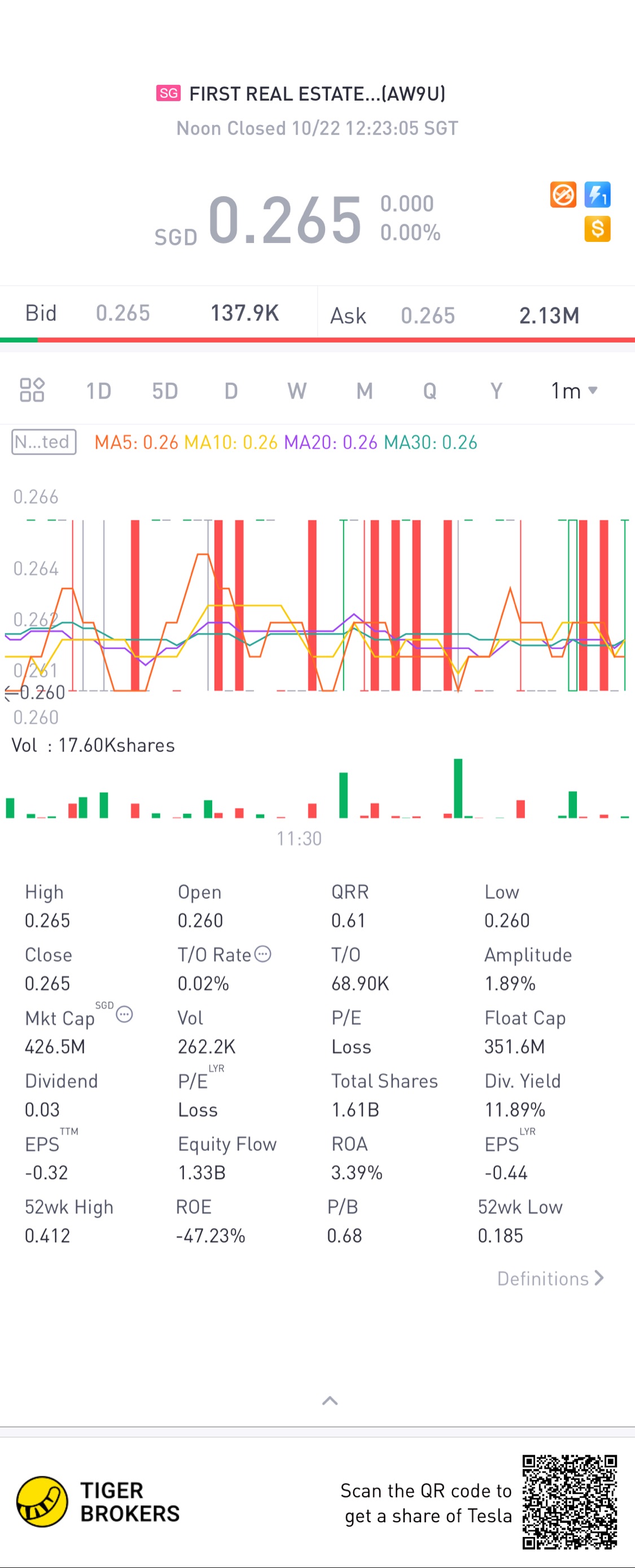 $FIRST REAL ESTATE INV TRUST(AW9U.SI)$