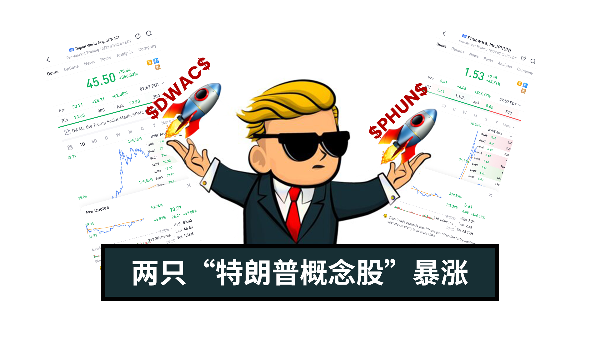 美国前总统特朗普的新公司特朗普媒体科技集团(Trump Media & Technology Group)周三晚间表示,与SPAC公司(SPAC)$Digital World Acquisition Corp(DWAC)$ . 已达成最终合并协议,而DWAC作为美股市场中的一只SPAC项目个股,将会在股东批准后,和特朗普媒体技术集团((Trump Media & Technology Group)合并上市。包括债务在内,合资公司的估值约为8.75亿美元。受此消息影响,DWAC暴涨356%,对应估值高达39亿美元。