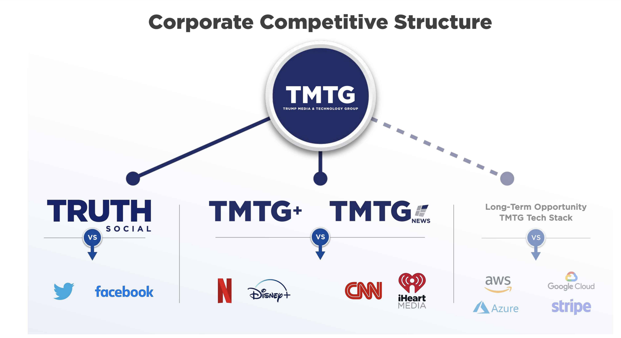 特朗普为什么要与DWAC合并呢?自然是为了借壳上市,特朗普媒体科技集团将推出一款名为“真相社交(TRUTH Social)”的社交平台软件,以对抗社交媒体巨头Facebook和Twitter等科技公司的社交平台软件。还给自己列了三个小目标,前期推出TRUTH Social用以对抗$Twitter(TWTR)$$Facebook(FB)$,中期要推出TMTG+”的流媒体服务,和奈飞$Netflix, Inc.(NFLX)$、Disney+$迪士尼(DIS)$ 竞争。而且,他还会推出播客和新闻服务,与CNN和iHeart Media竞争。