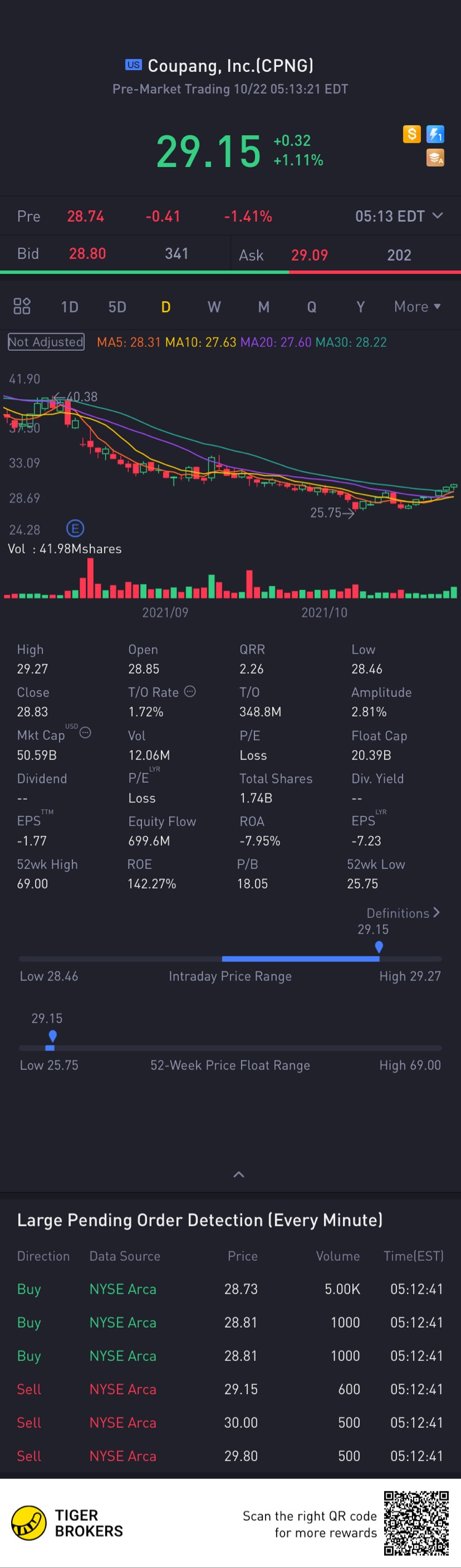 $Coupang, Inc.(CPNG)$Let’s see if it will go up soon