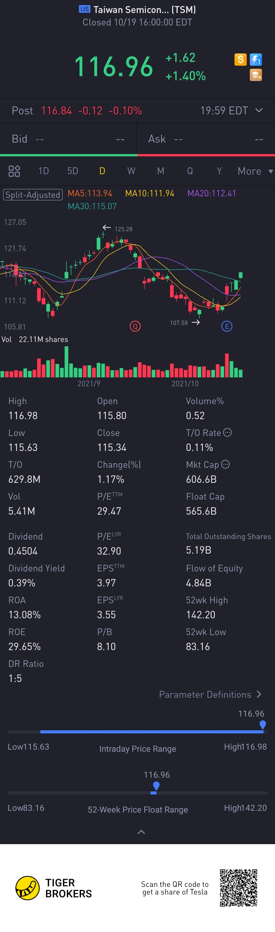 $Taiwan Semiconductor Manufacturing(TSM)$retest of 125 in the coming days?