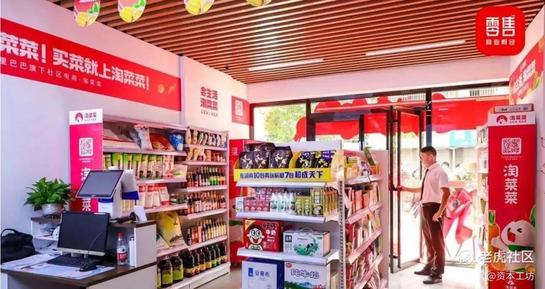 提货环节,阿里也在做一些升级改造的尝试,淘菜菜首家小店开张在长沙芙蓉区王龙小区,这家小店汇聚果蔬百货店、直播间、充值站和自提点等功能,改造成本不高,主要是货架和冷藏柜,未来可能成为其他小店的样本工程。
