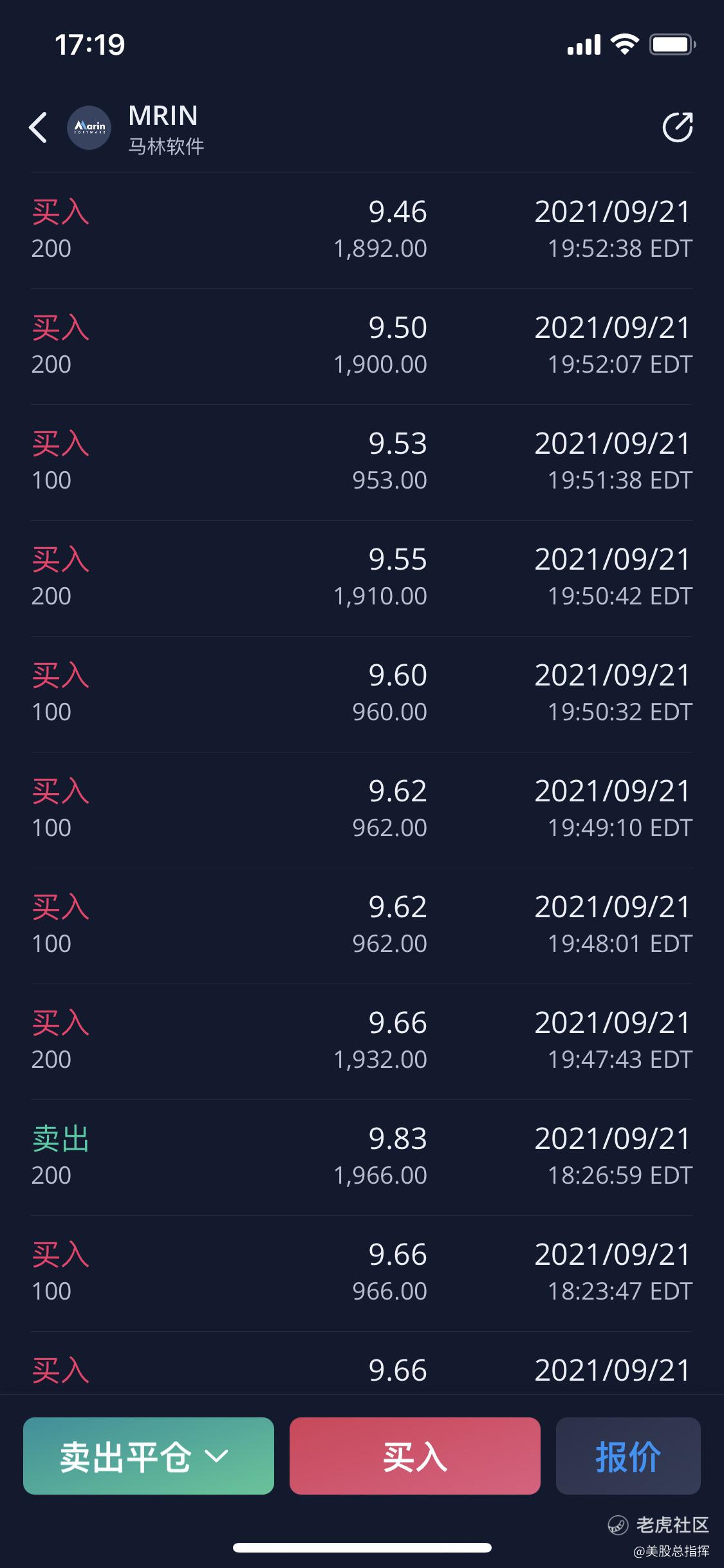 总指挥在盘后发帖说到今天软件可能有行情,自己也就是早上八点前埋伏了一波$Marin Software Inc.(MRIN)$ 当然买的很少,就1200股,(因为盘前盘后也都有增发可能,有一定风险),不过今天盘前也是一波涨,最高到10.2,所以我们每次操作知行合一很重要,你看到总指挥空间站说开仓某个股票,那我就一定是毫不犹豫的上了,而你每次怕这怕那,犹犹豫豫不敢上,等你看半天股价早已又涨了10个点了!那时候再买,却又被割了一波韭菜!这就是为什么你每次都赚不到钱的重要原因!