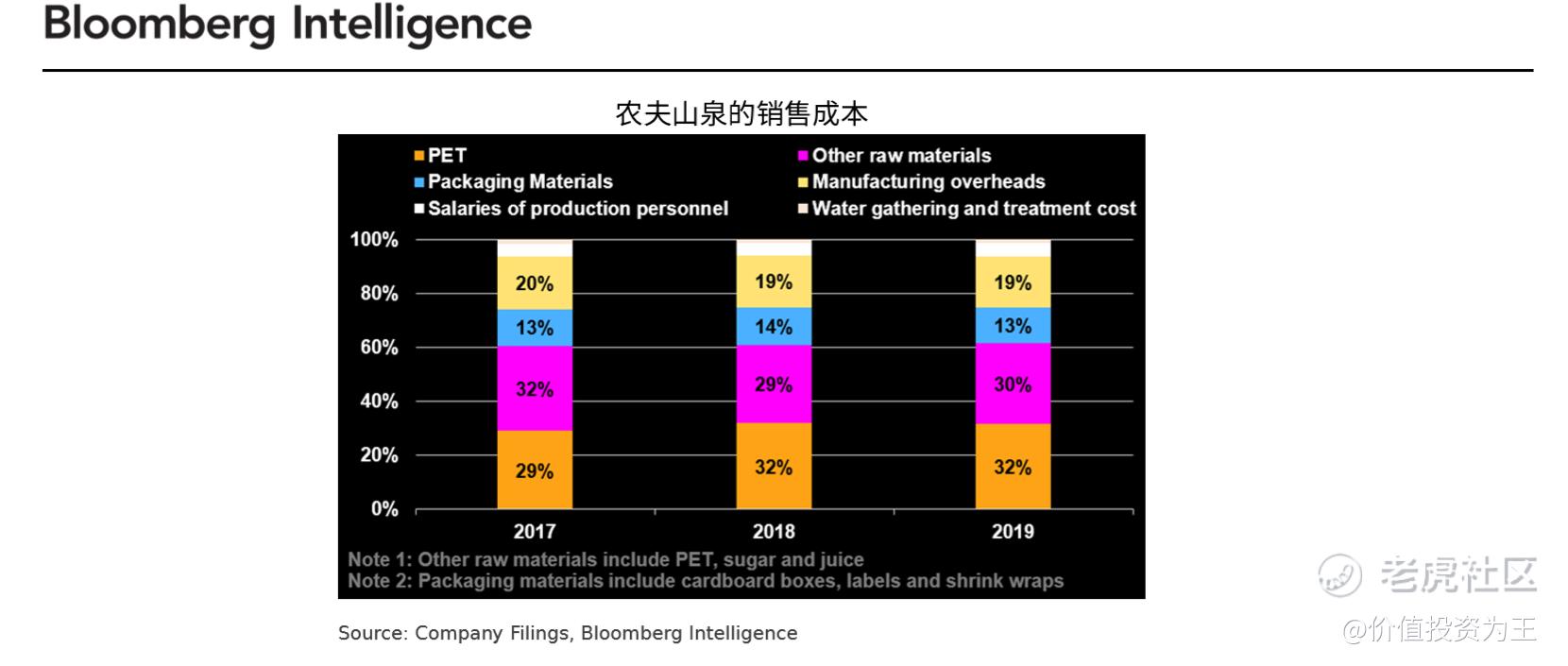 由此预测,彭博分析师认为农夫山泉或将考虑提高售价,以抑制原材料成本上涨带给利润率上的压力。