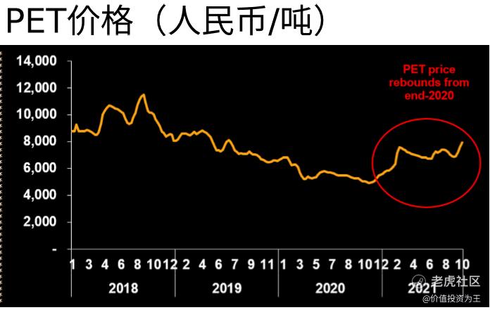 2017-2019年间,PET的价格更高,占成本比重更大,甚至占到了收入的13-15%,销售成本的29-32%。