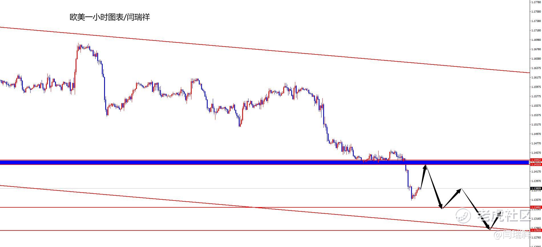 欧美1.1430-40区间空,防守40点,目标1.1340-1.1290