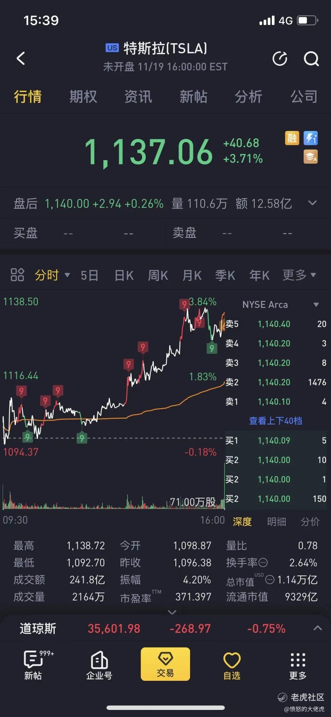 上周五(11.19号)又涨了3.7%,股价1137美元,市值1.14万亿美元。