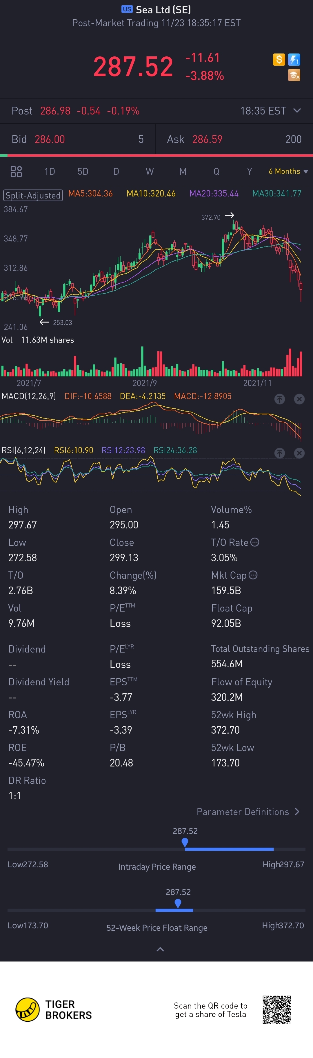 $Sea Ltd(SE)$bullish hammer pattern here at the strong support of 285 range.. let's see