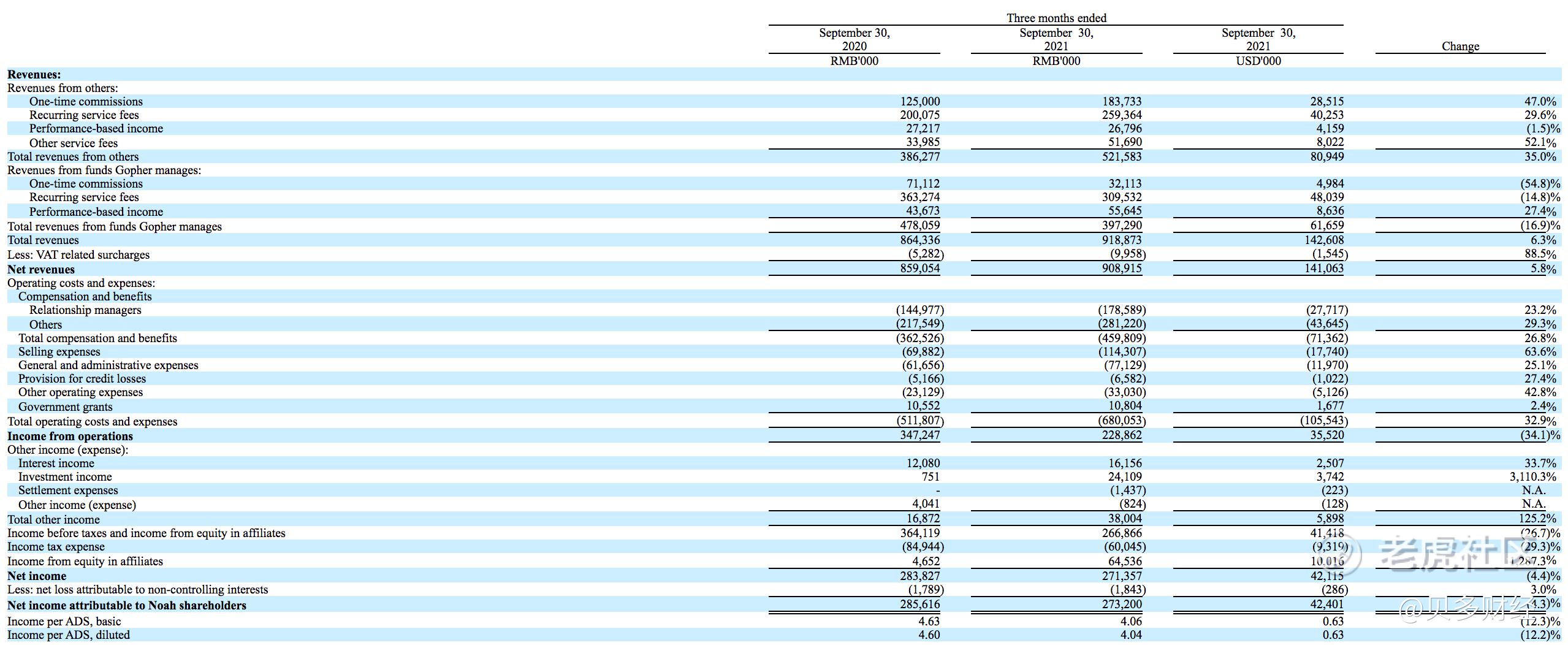 11月24日,诺亚财富(NYSE:NOAH)发布截至9月30日的2021年第三季度财报。财报显示,诺亚财富的营收继续保持增长,而净利润规模则同比出现下滑,出现“增收不增利”的情况。