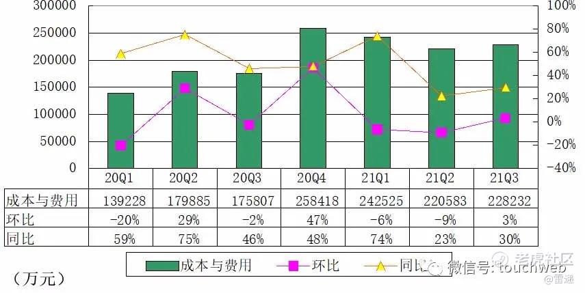 达达集团第三季度总成本和支出为22.823亿元,较上年同期的17.581亿元增长30%。其中: