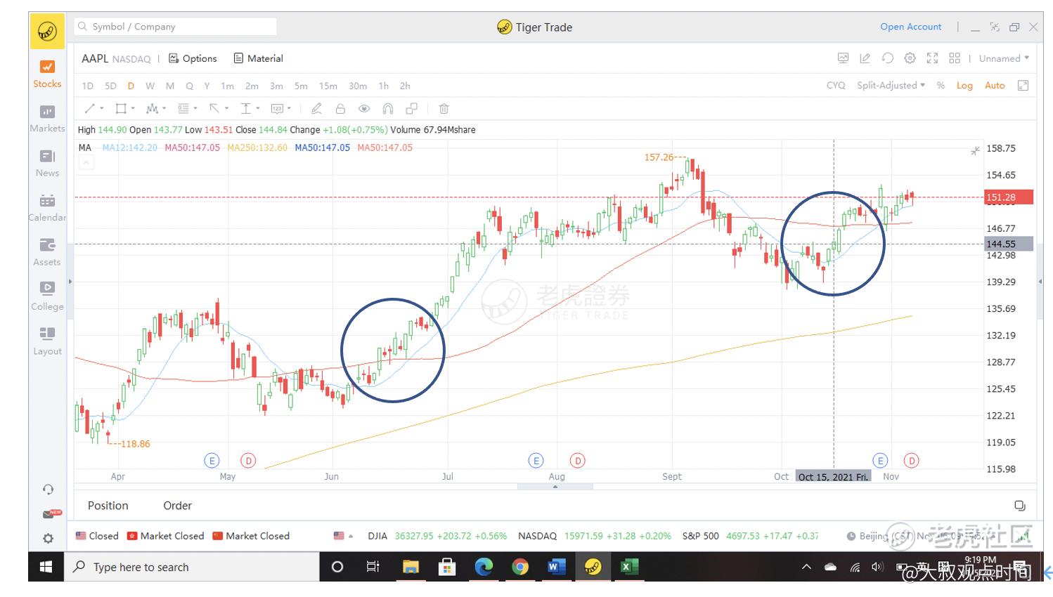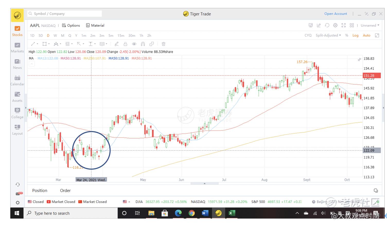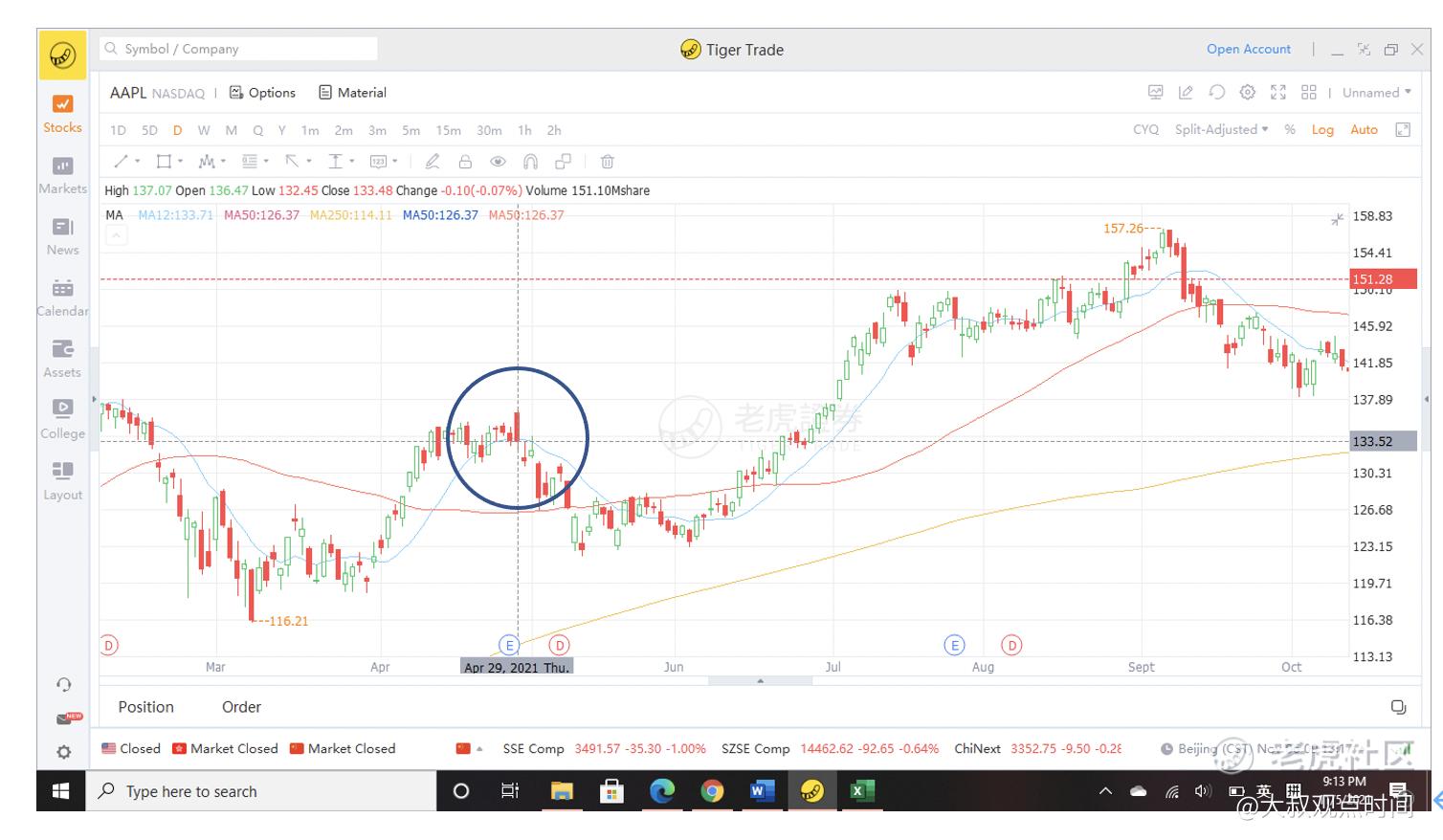 苹果的日线图(2021年4月- 10月)