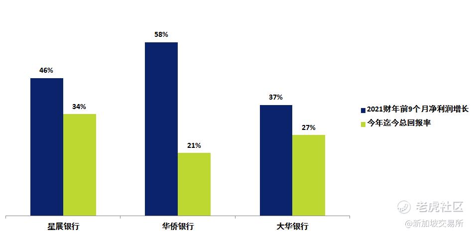 星展银行、华侨银行和大华银行2021财年前九个月净利润增长及总回报率表现如下所示。
