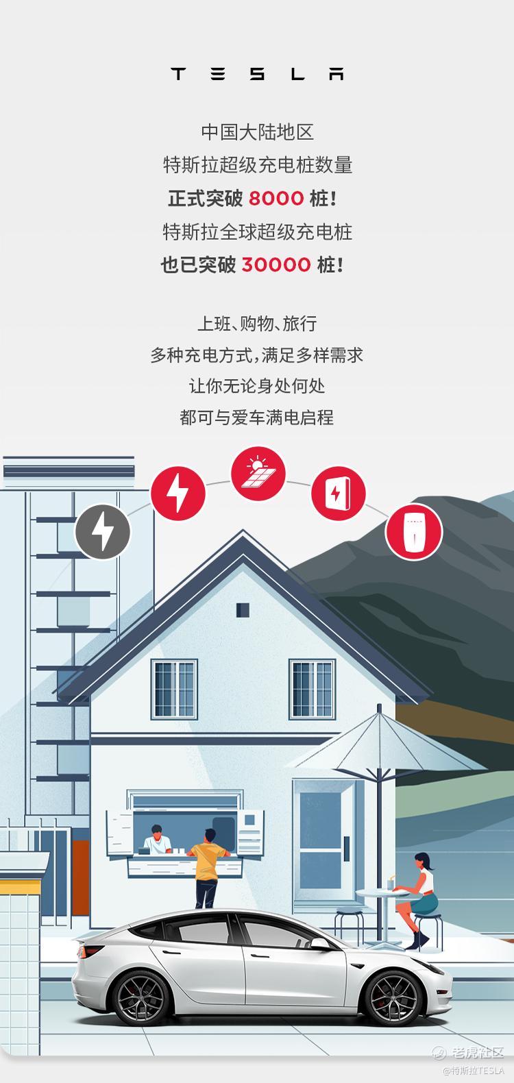 中国大陆地区特斯拉超级充电桩数量正式突破8000桩!