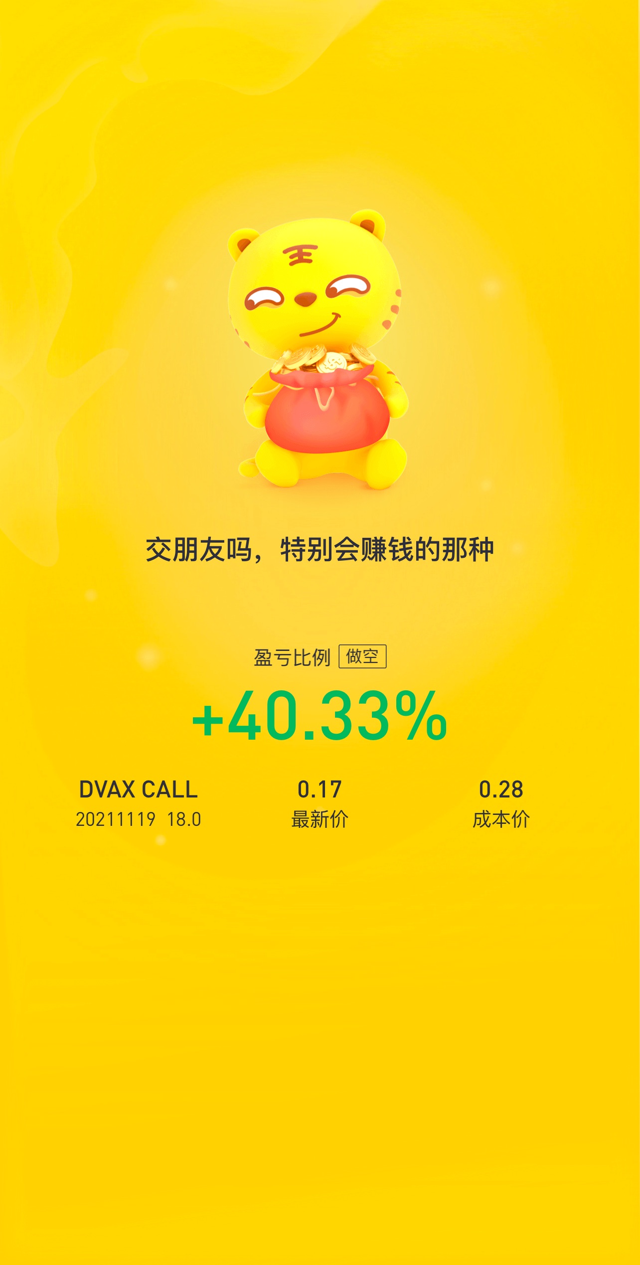 $DVAX 20211119 18.0 CALL(DVAX)$希望后天变成100%。开个玩笑了!😄还是希望后天股价能过$18。