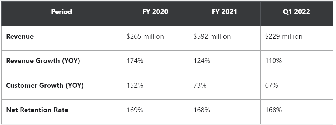 为了拓宽自己的护城河,Snowflake最近推出了一些新功能,比如面向数据工程师和人工智能科学家的开发平台Snowpark,以及“由Snowflake驱动”(Powered by Snowflake)网络,该网络帮助企业在其数据云中直接构建应用程序。这一生态系统的扩张可以锁定Snowflake的客户,并保持较高的净留存率。