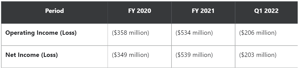 其次,在公司 3月份公布了 2021财年的业绩后,公司营收比上一年飙升 124%,但其净亏损扩大,引起投资者担忧。