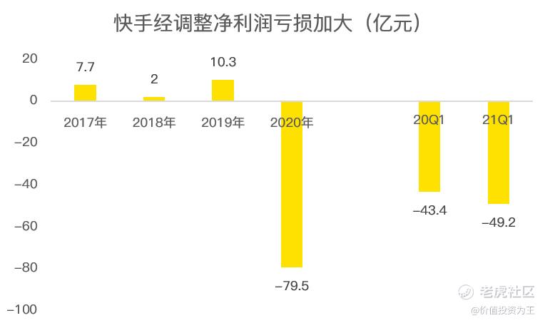 今年一季度,快手经调整后的净利润亏了49亿,正如上文对销售费用的总结,只要该数值回归正常的比例,仅销售费用一项便可让快手盈利。