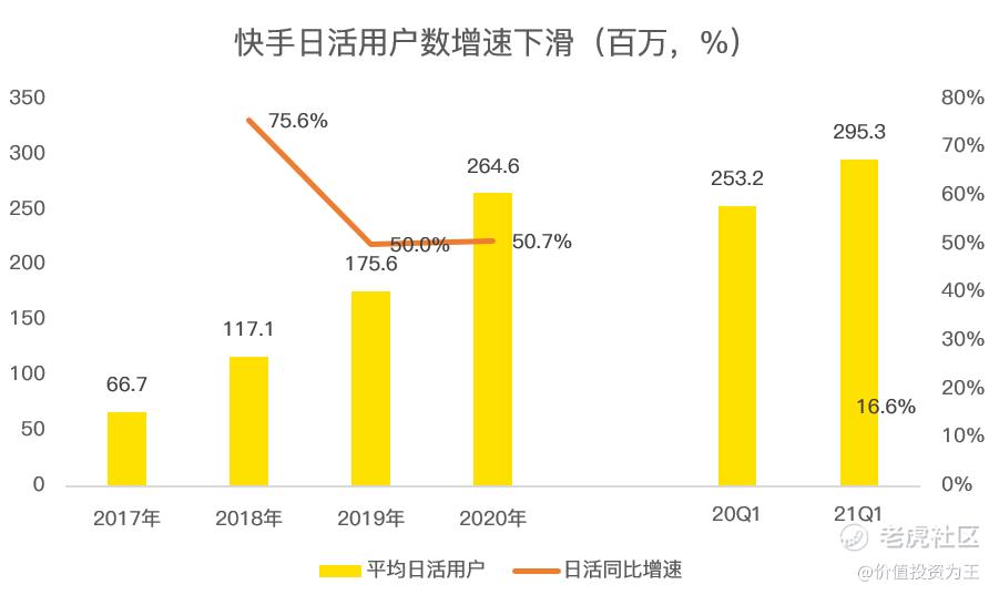 2020年,快手日活2.65亿,较2019年增长50.7%,和2019年50%的增速相近。