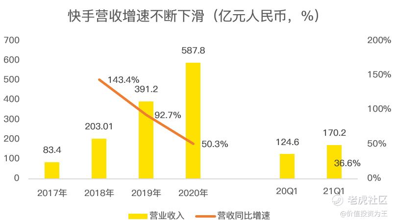 最后是快手的电商业务,一季度同比暴增589%,这块也是是快手最有前景的一块,2020年的收入是37亿人民币,还有很大的空间可以探索。