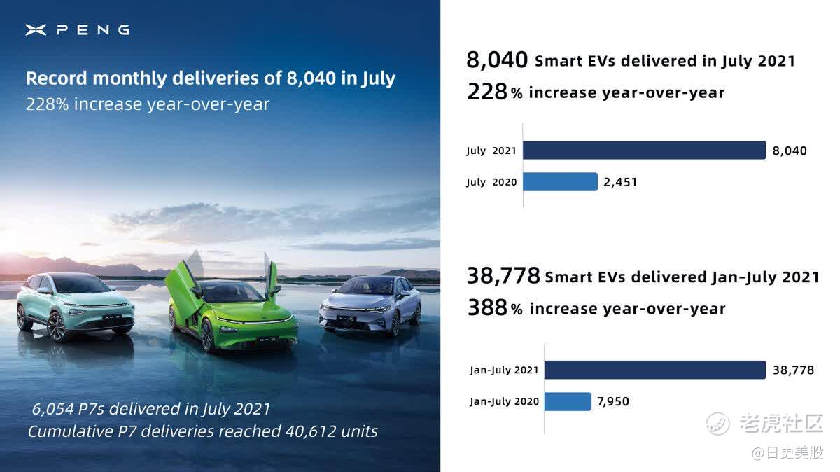 小鹏在 7 月份的交付量达到了创纪录的 8,000 辆,因为 P7 在第一年的交付量就超过了 40,000 辆。