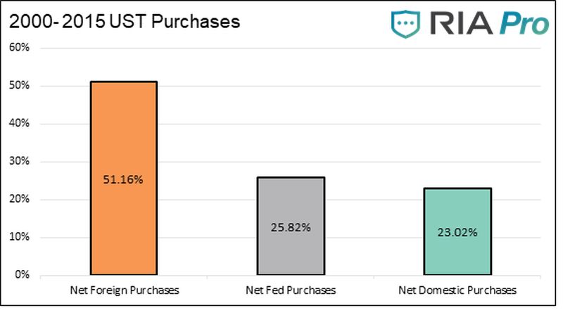 2016年至今,美国国内投资者购买了超过100%的美国国债,与2000-2015年形成鲜明对比。