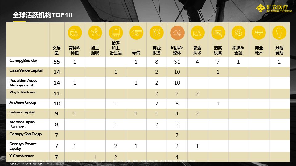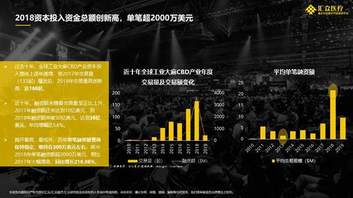 说明:本报告研究对象仅指花叶提取CBD涉及的相关领域的股权投融事件,不涉及麻杆加工、麻籽加工、麻皮纤维等领域。本报告中的信息数据来源于汇众医疗-因钽数据、cbinsights、crunchbase的公开数据,时间范围为2010年1月1日至2019年2月28日。