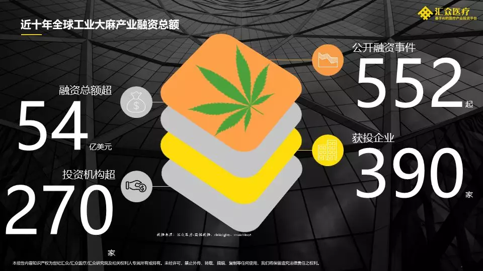 近十年,全球工业大麻产业股权融资总额超54亿美元,获投企业达390家。