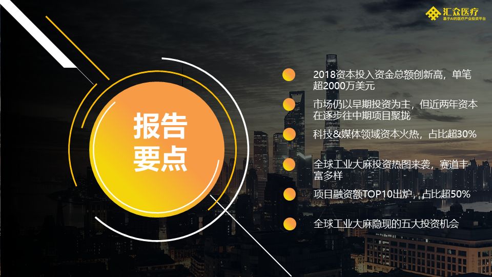 本报告主要探讨了工业大麻产业格局及未来市场机遇,《近十年全球工业大麻投融报告》节选自《2019工业大麻产业白皮书》的部分内容,以近十年全球工业大麻的股权投融数据做投融分析,洞察资本趋势。