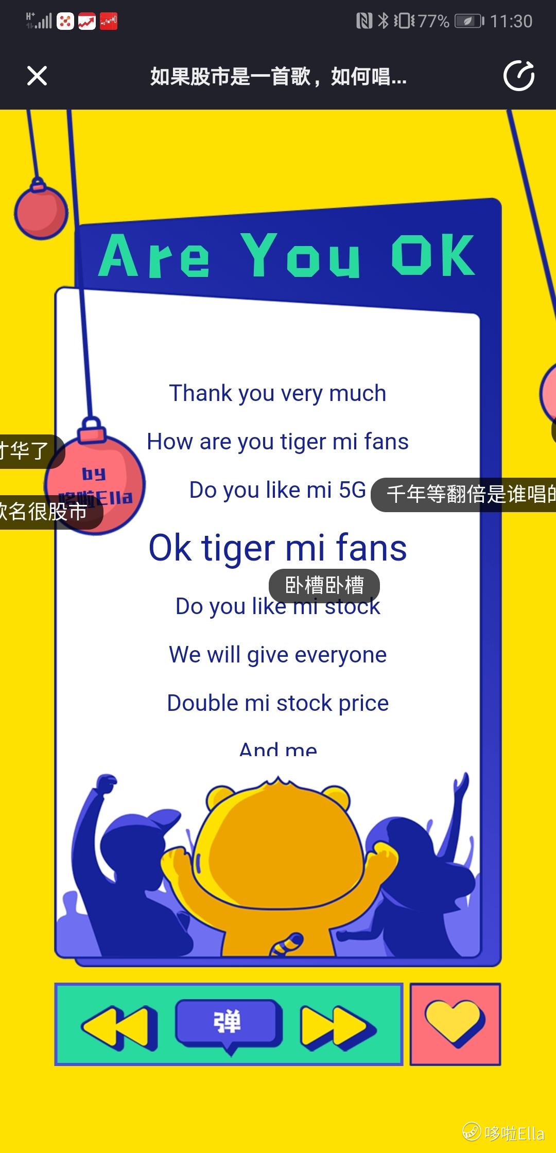 - 明亮蓝影·2019-12-25哎呀,哆啦唱得好听, @九格 也非常好,话说现在真搞不清是男是女了,还有东北哥们唱特斯拉的,明年妥妥的股价到2000[财迷][财迷][财迷]点赞举报