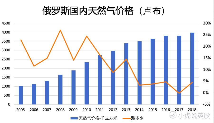 第一原因是俄罗斯天然气市场收到规章影响。俄罗斯天然气产生量超过消耗量,所以俄罗斯不进口天然气。值得关注的是,俄罗斯政府对国内市场控制天然气价格波动。在这样规章影响下,俄罗斯公民和公司对天然气支付不一样的价格。俄罗斯各个省也有时有不一样价格。在这样规章影响下,每年天然气价格不会跌,反而俄罗斯政府每年允许天然气公司把价格涨了一点点。这个很可能是因为俄罗斯政府持有世界第一大天然气公司“GAZPROM” $俄罗斯天然气工业股份公司(OGZD.UK)$ 的51%的股份,所以俄罗斯政府要保障它每年从GAZPROM获得稳定的股息。(在过去5年,GAZPROM的平均股息回报率为6%[得意])