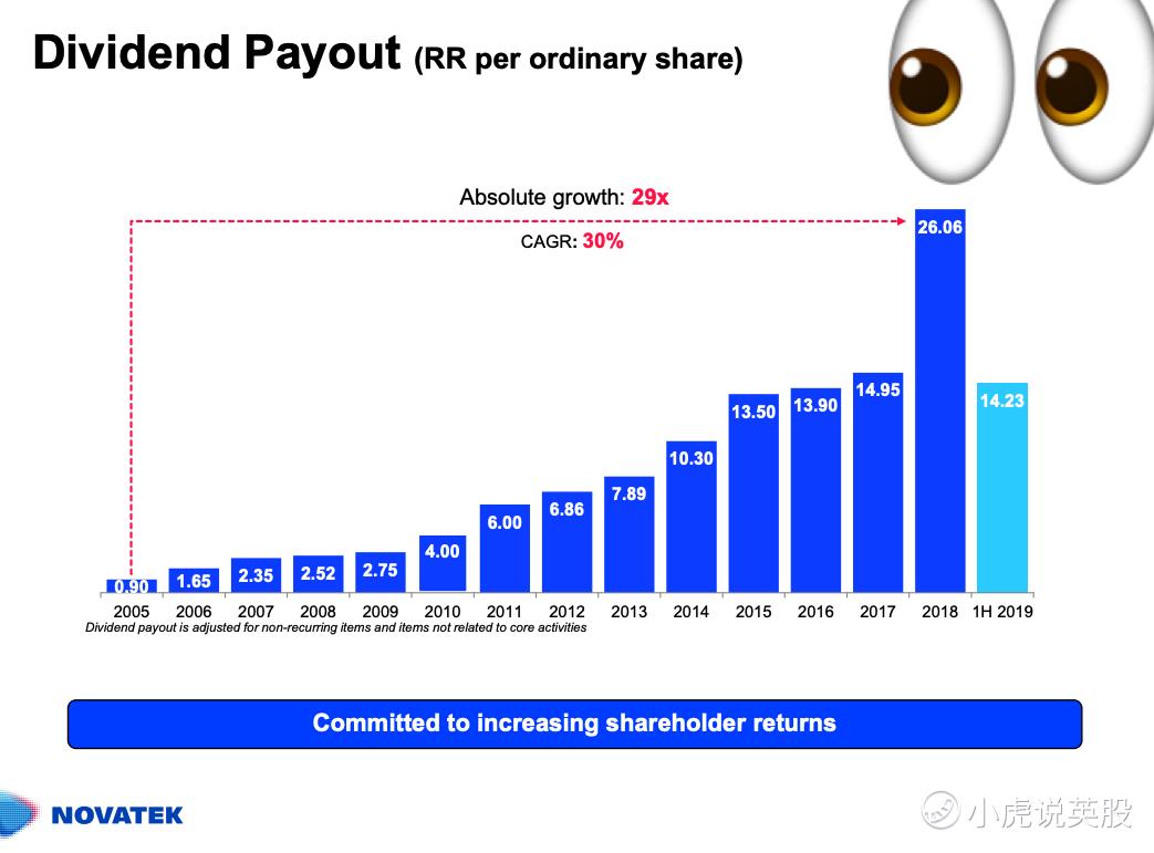 2005年公司在伦交所和莫斯科交易所上市时,公司的发行价为$16.75美金 (诺瓦泰克属于伦交所的国际订单簿所以它以美金计价和支付股息[贱笑])目前在伦交所,诺瓦泰克的股价大约为165美金(最近股价跌了因为液化天然气价格跌了)。假如公司的股价大约200美金(今年1月中旬股价突破215美金),在过去15年,公司股价的年化复合增长率为18%[财迷] 值得关注的是,公司也每年支付股息,在过去五年公司的平均股息回报率为2%以及从2005年上市时,公司每年提高每股的股息额。另外小虎们必须要关注公司正在回购股票,从上个月股票开始跌后,公司已经回购了100万股票以上[保佑]