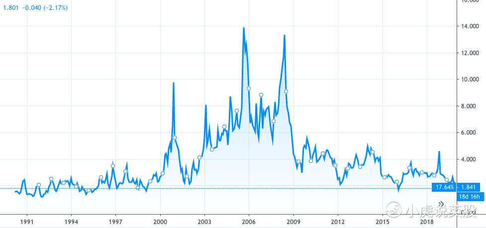 以下图片显示世界天然气价格从2005年(诺瓦泰克2005年7月上市时)到现在(美金-BRITISH THERMAL UNITS)