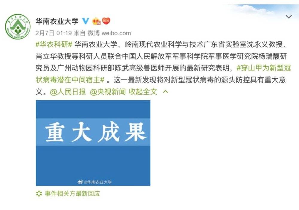 科学研究显示,新型冠状病毒(2019-nCoV),是SARS的“近亲”,和SARS的自然宿主云南菊头蝠中存在的RaTG13冠状病毒一致性高达96%。
