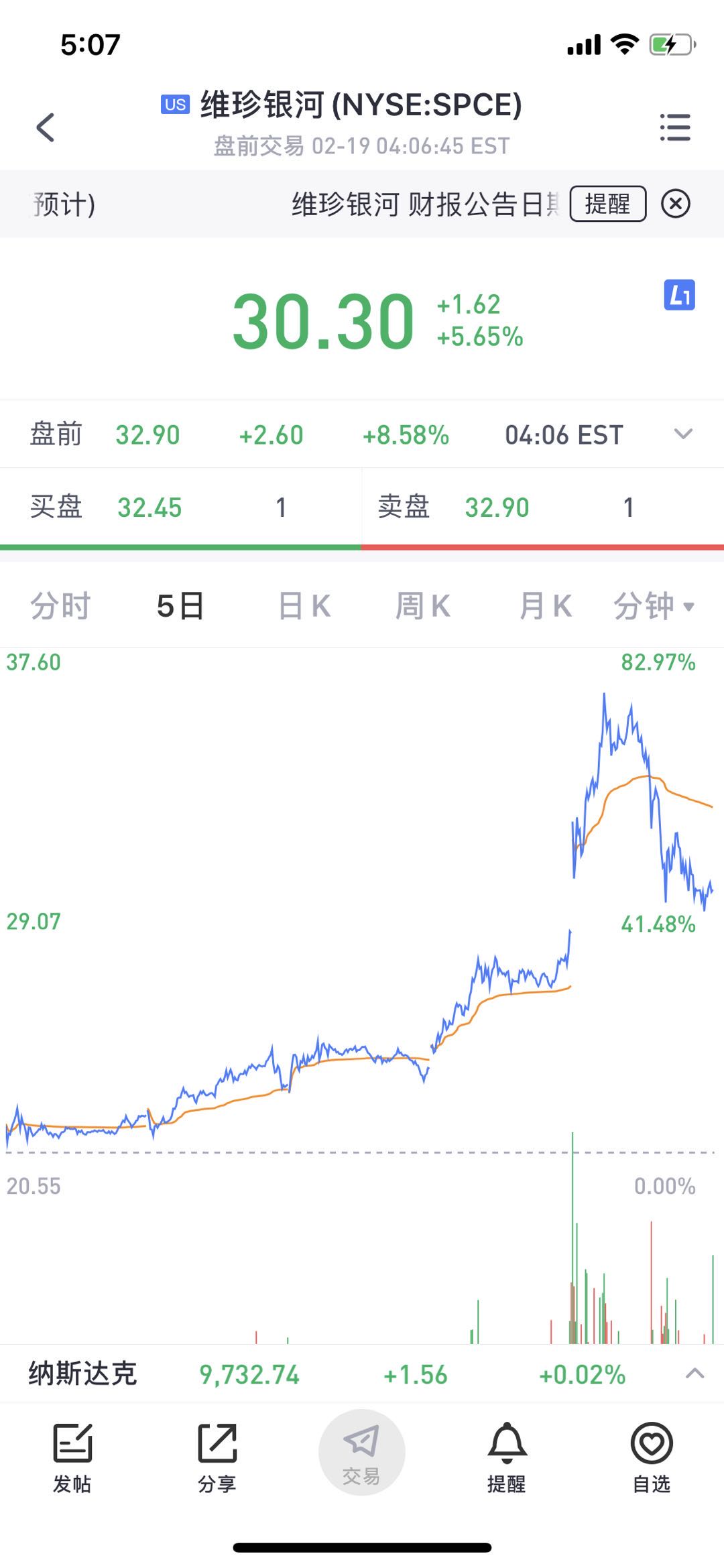 刚刚查异动股票的时候,发现一只飙涨的股票,五天涨了80%。$维珍银河(SPCE)$这家公司是干啥的?