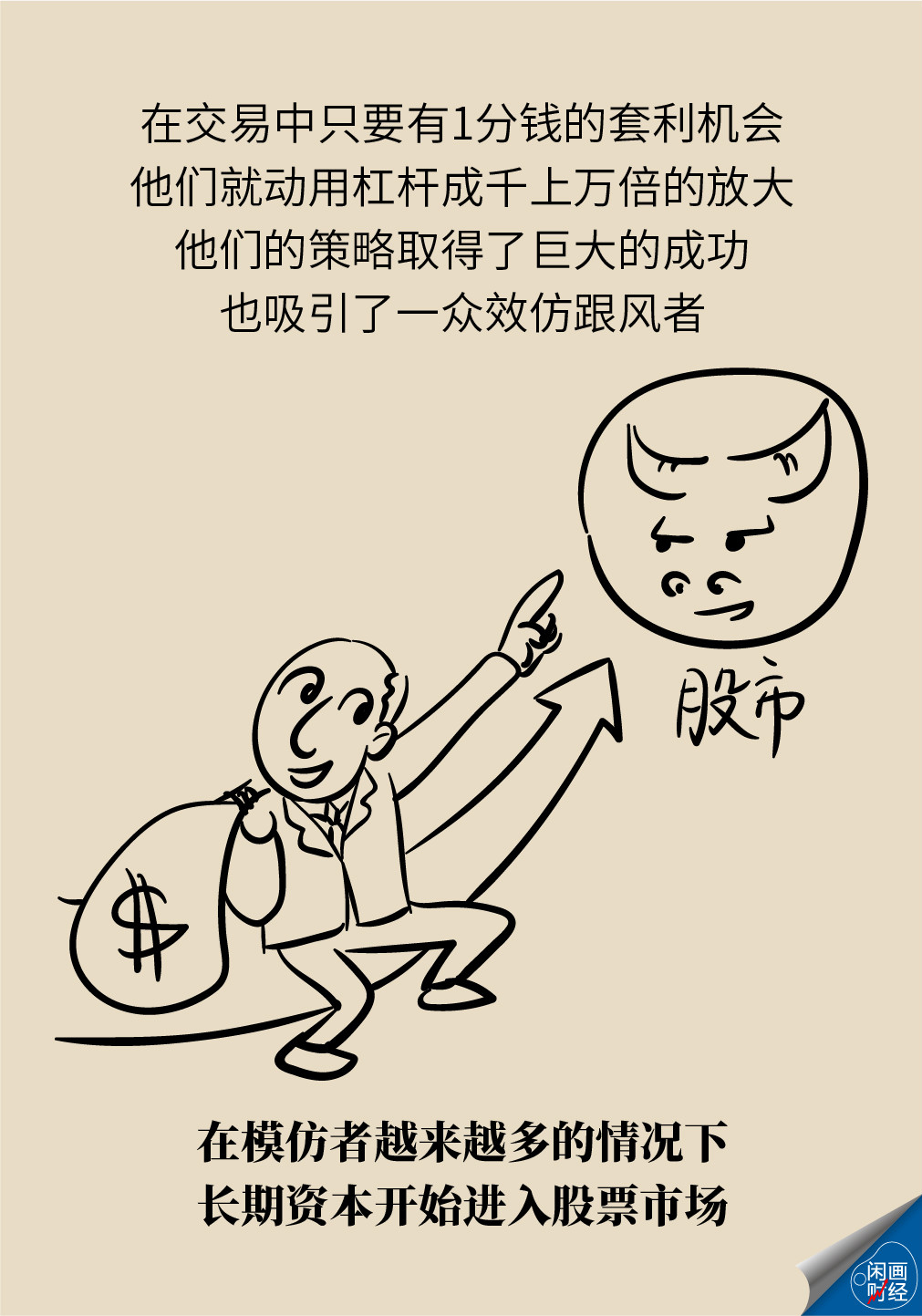 长期资本核心的16个人,个个功成名就衣食无忧,本不需要更多的金钱和名誉,但仍然敌不过贪婪的本性,把低风险低收益的套利策略,加大杠杆,去寻找更高的收益,在推土机前面捡硬币,最后倒在极端风险面前。