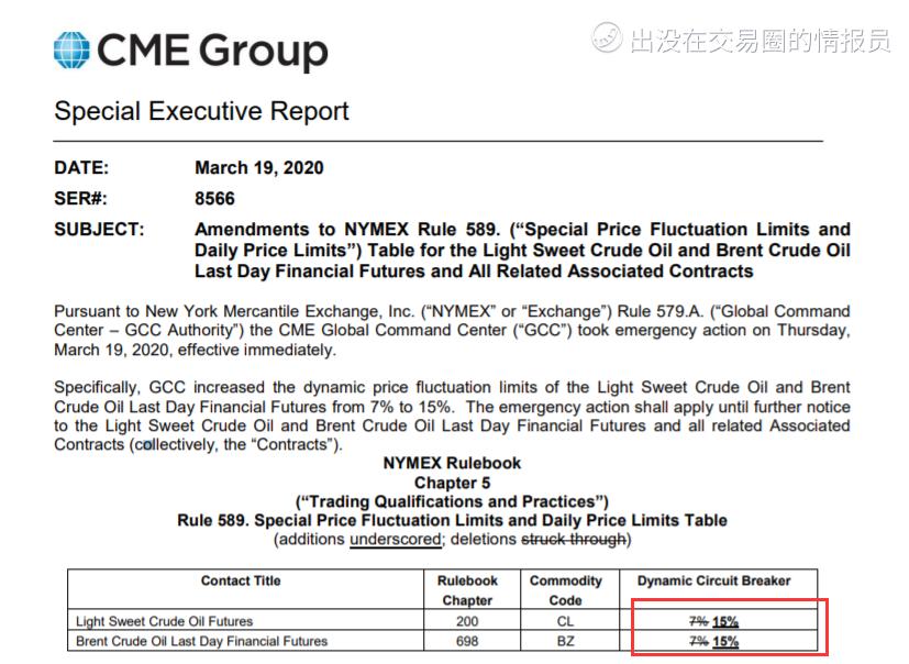 而根据最新的CME交易规则,轻质低硫原油上下波幅限制从原来的7%扩大到15%.