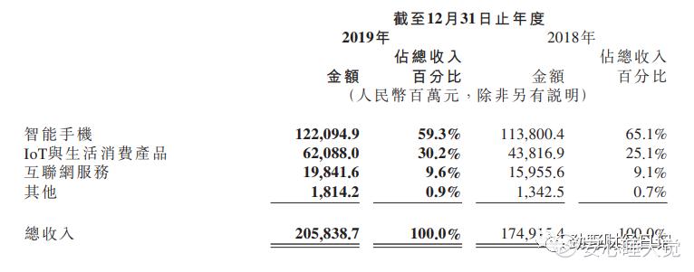 财报明显可以反映出小米与华为的差距。并且不比较华为看,也可以看出小米2019年手机业务增长乏力。