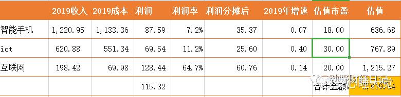 但是我觉得还需理智下给个估值更好,这里我用最简单的分部市盈率估值法。