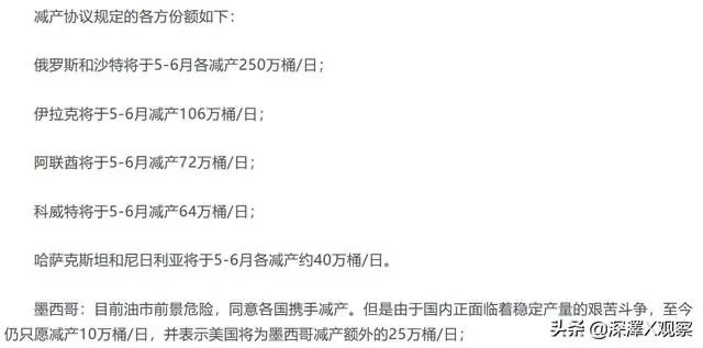 本剧最具关注的美国:减产由市场决定,幅度最少为200万桶/日,或在300-400万桶之间,这也就是6-8周之后的事;与此同时,美国继续通过多方施压沙特点头同意减产协议,某普表示将为墨西哥减产25-30万桶/日。