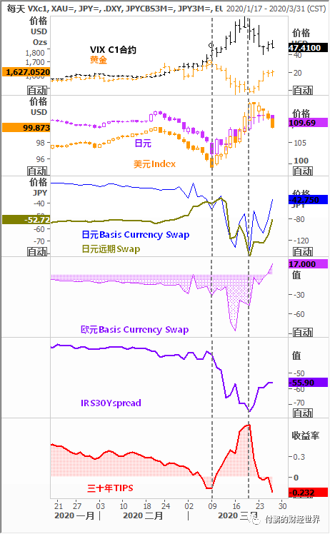 VIX波动率已经在这六个交易日下降,长期债券市场得以恢复,并且在FED买买买的加持下,也不用担心实际利率下降导致的结构性配置问题,离岸美元流动性得以恢复,美元指数重新回落100,主要币种的basis swap也逐步恢复;