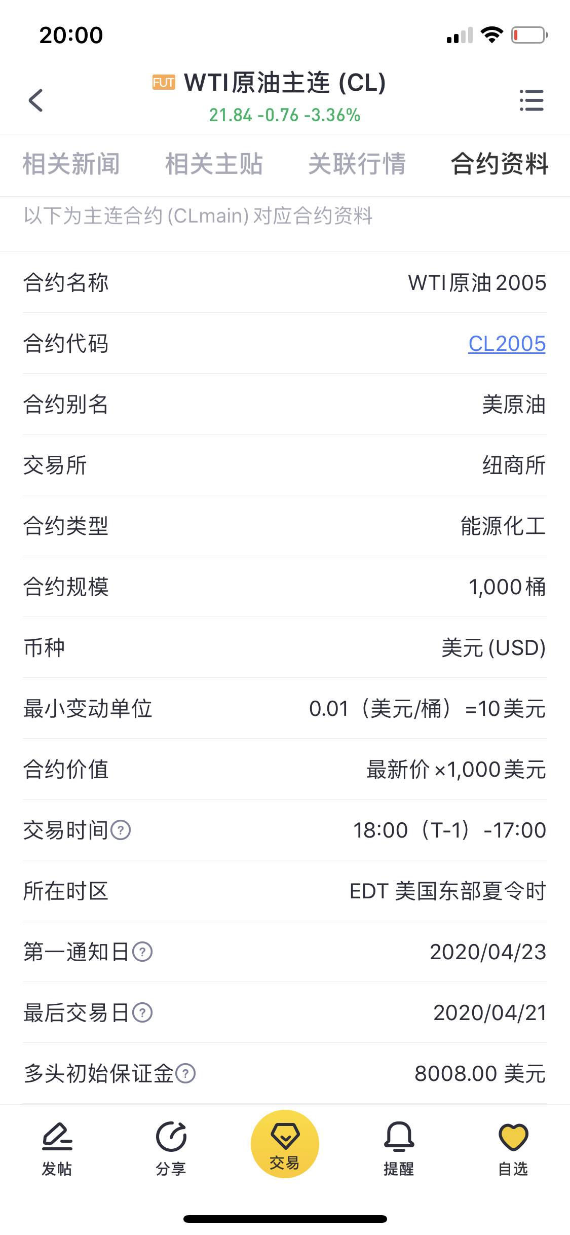 大概了解了一下,现在买入不加杠杆就不会爆仓,但是每个月有2%的转换费,如果跌到17-18美元一桶,我就毫不犹豫出手买1000桶了。持有一年转换费24% 目标价18美元涨到36美元,还有76%的利润