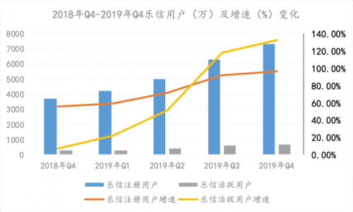从获客上讲,消费场景的增加和会员权益的延伸,拓展了流量池范围。乐信实现了用户数量以及用户增速持续上升,同时乐信的活跃用户表现也显著提升。