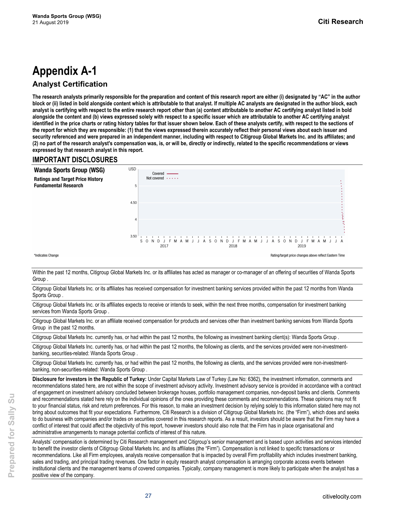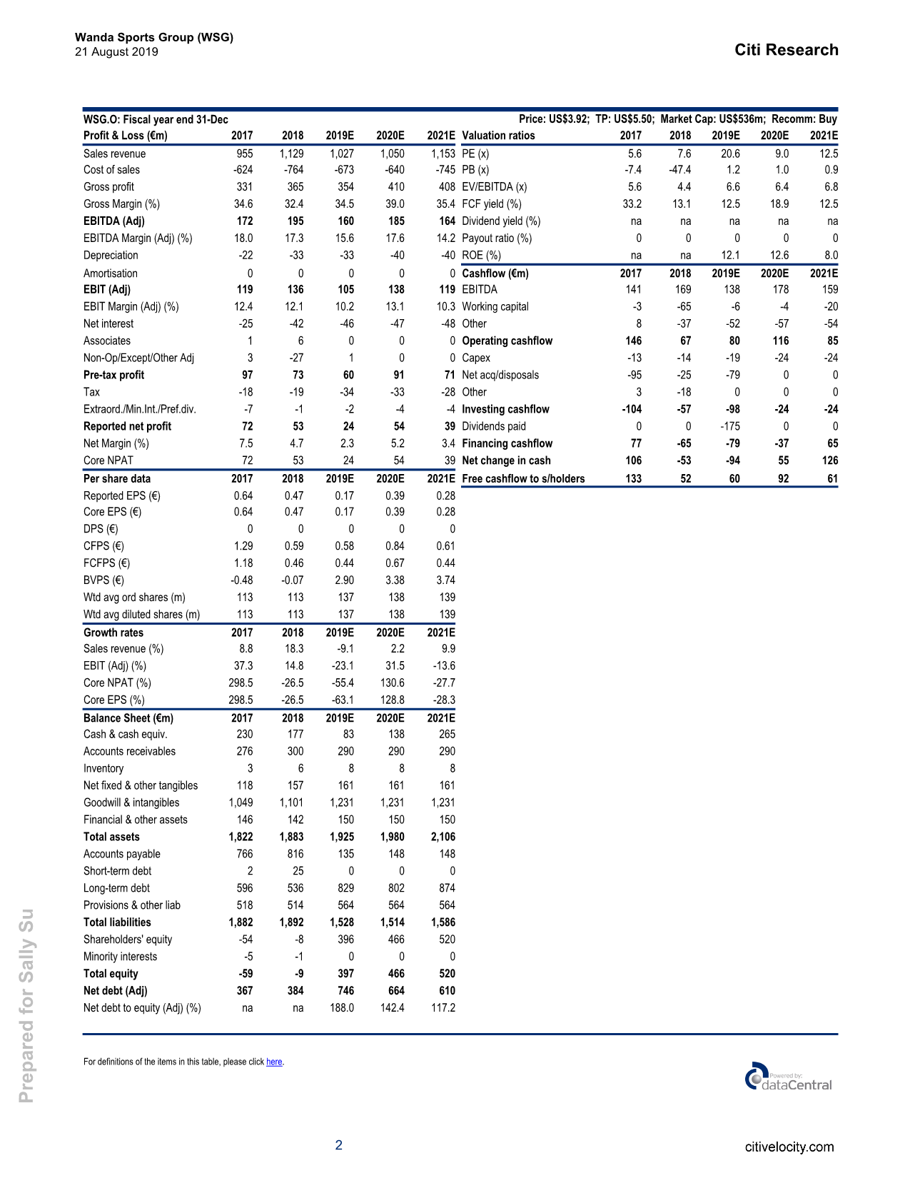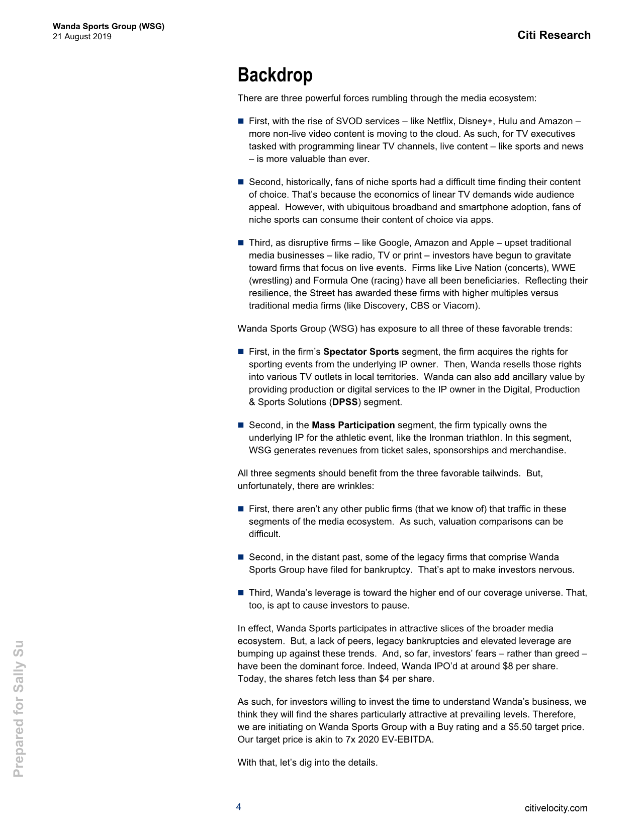 8月21日,花旗发布对万达体育(WSG.US)的研报显示,该行首予其“买入”评级,目标价为5.50美元,相当于7倍2020年的EV-EBITDA。