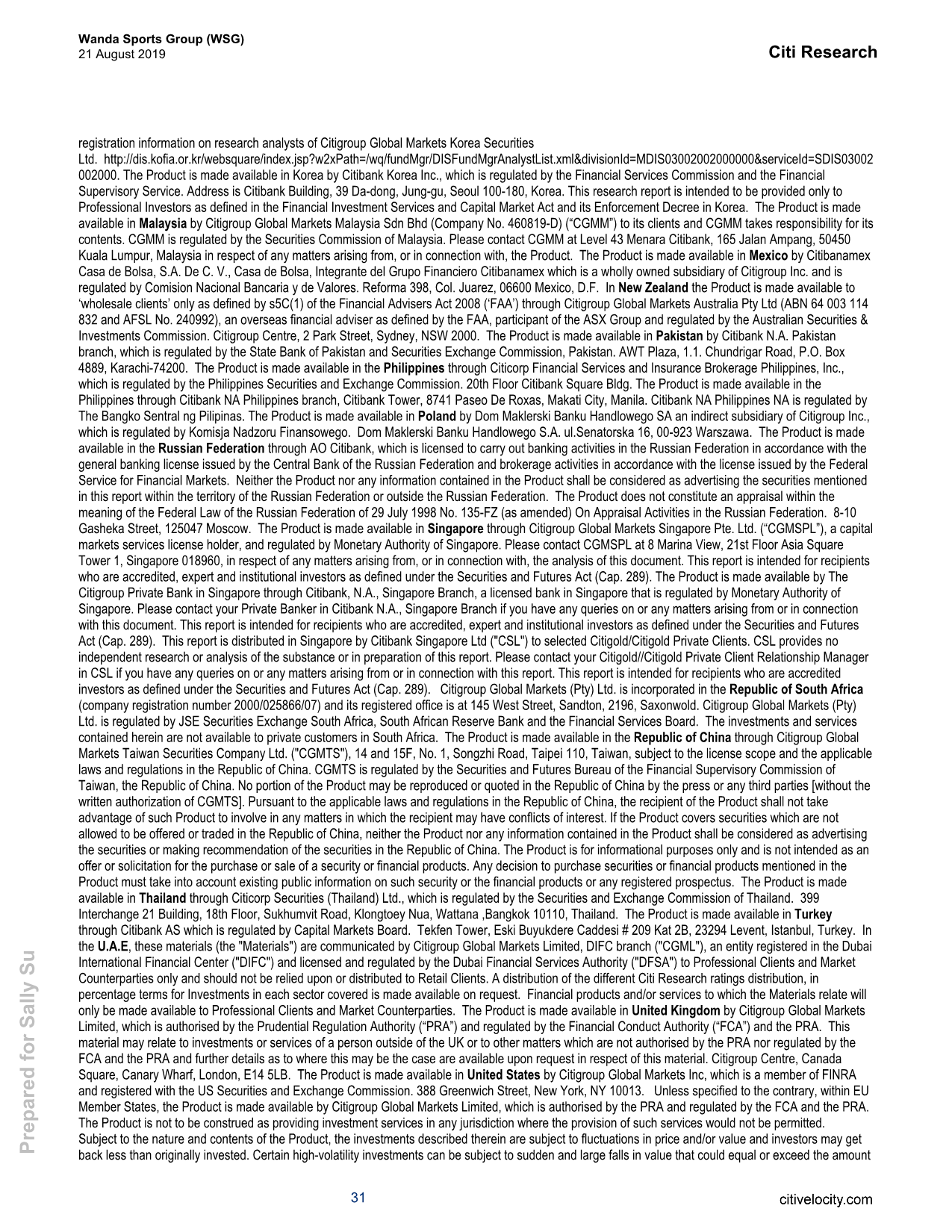 花旗给予万达体育买入评级