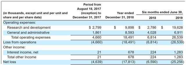 - 财务:该公司还未盈利,截至2019年6月30日,该公司拥有1.853亿美元现金和1,100万美元的总负债