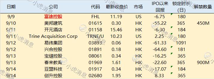 Q2的夏日财报基本上过去,市场开始变得清淡起来。最近假期比较多,国内交易的朋友可能需要给自己放一个假安慰安慰。不过在出行之前,让我们先来看看9月份哪些公司即将迎来解禁。