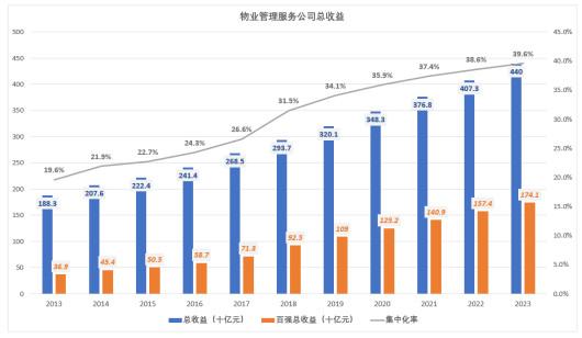 鑫苑物业逾六成以上的收益来源于物业管理服务,并且其收益占比及毛利率(2016年-2018年的毛利率分别为14.6%、20.6%、20.7%)逐年上涨。根据数据显示,未来物业管理服务百强公司会保持稳定的增长率。据弗若斯特沙利文数据,到2023年,中国物业管理服务公司的总收益预计将达人民币4400亿元,从2018年至2023年的预期复合年增长率为8.4%。而物业服务百强企业的总收益预计达1741亿。