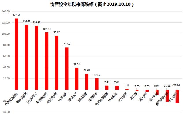 就总收益而言,中国物业管理服务百强企业的增长率要高于整体物业管理服务公司的增长率;2018年,百强企业的集中化率达到31.5%,并预计2023年达到39.6%。近两年,赴港上市的物管企业就有十几家,其中不乏中海物业、碧桂园服务、雅生活、彩生活等母公司北京强大的物管企业。而笔者也注意到,这些物管公司在港股市场的股价表现非常强势,包括在2019年大市走弱的情况下仍有不错涨幅。如永升生活服务、雅生活、佳兆业美好以及新城悦四只物管股都有超过100%年涨幅的表现。